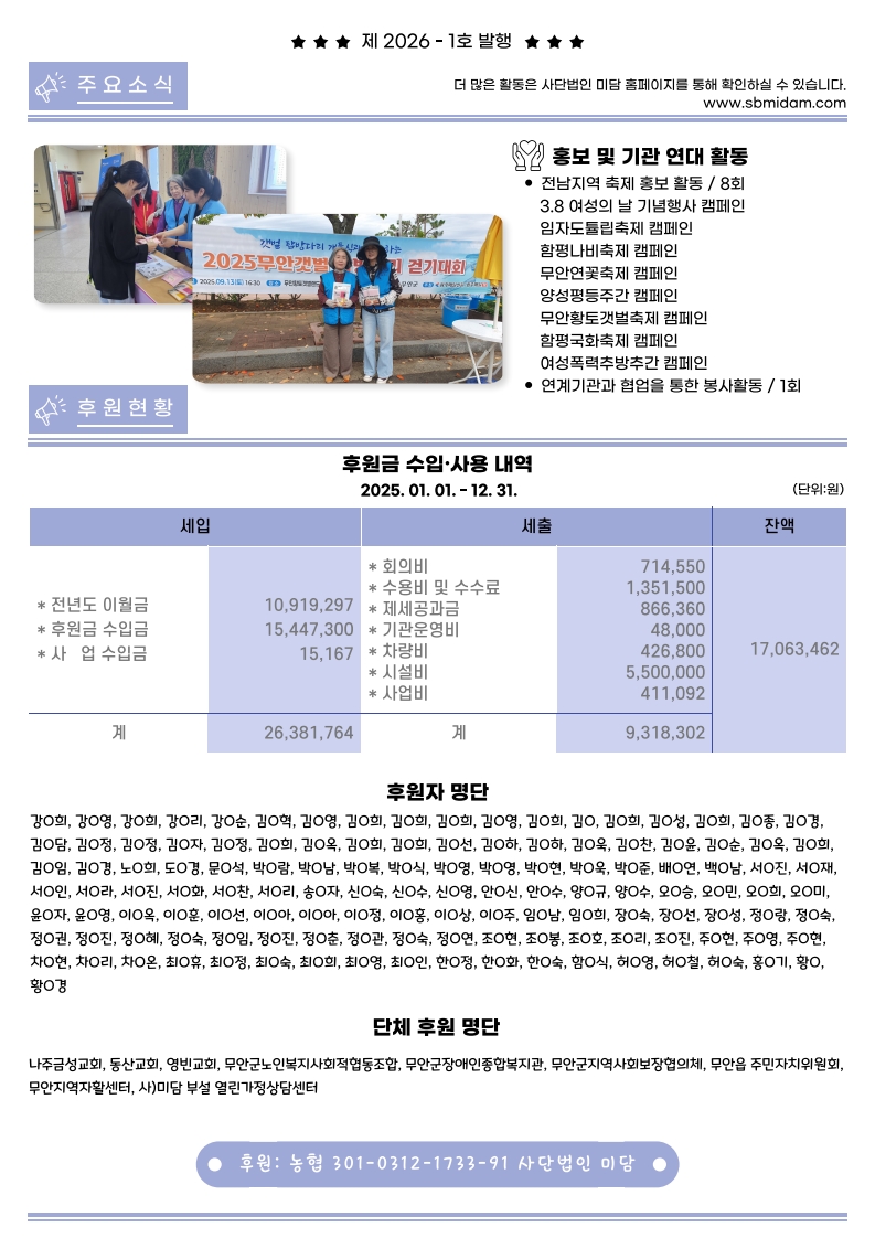 제 2026-1호 사단법인 미담 소식지